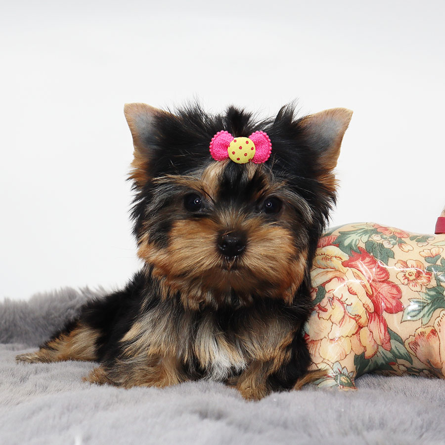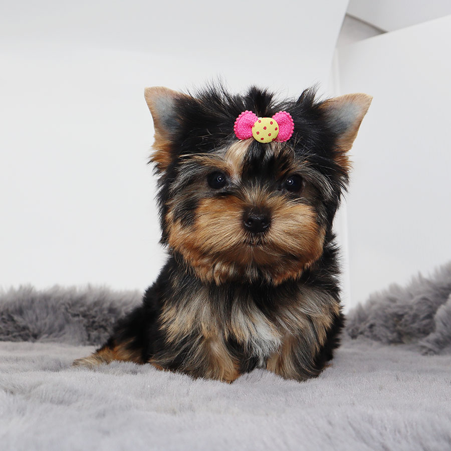 Bella has pretty teddy bear face with short button nose and perfect almond shape eyes.